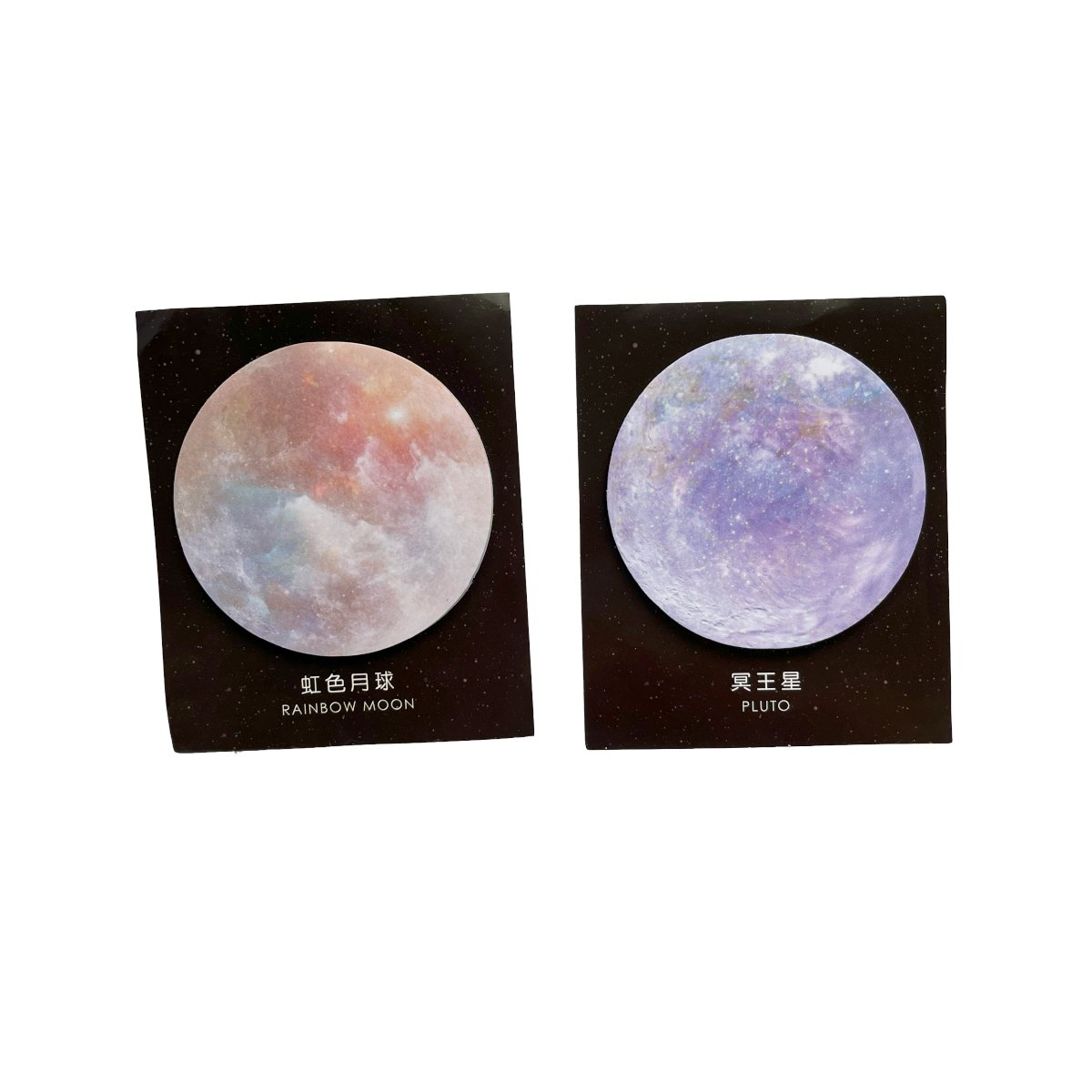 Notas adhesivas con diseño espacial, ideales para organizar tus ideas con un toque creativo.