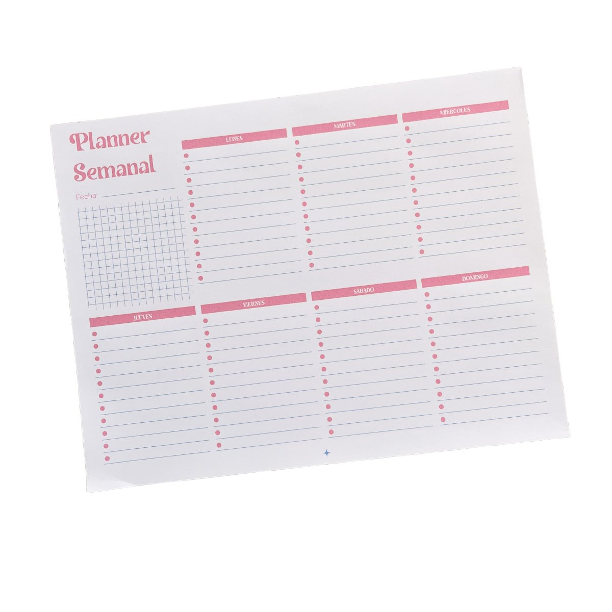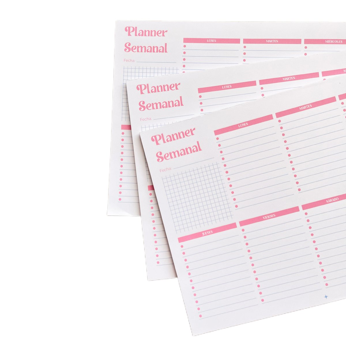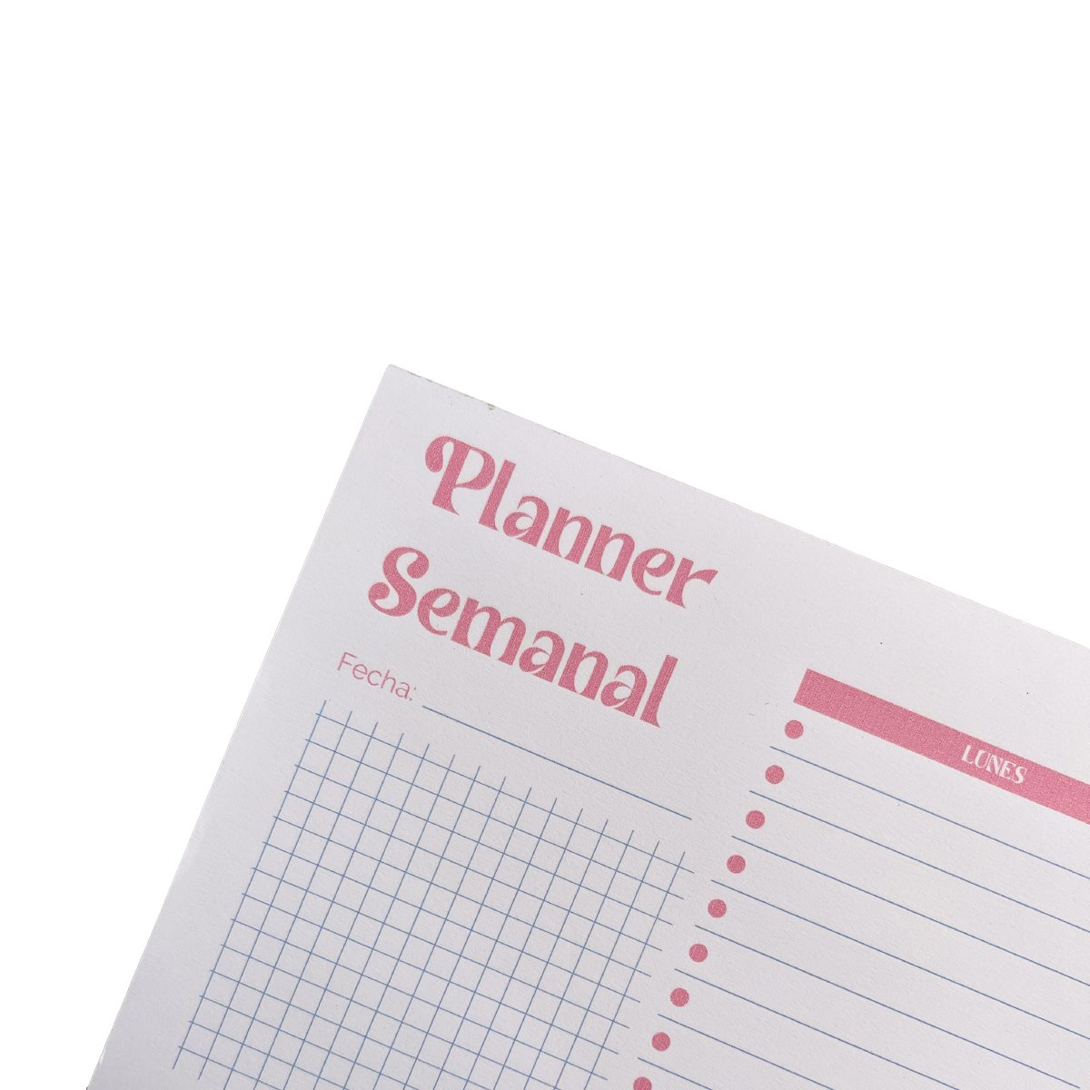 Planificador semanal tamaño carta, con base de cartón firme para mayor comodidad al escribir. Incluye 50 hojas de papel de 90 gramos, suaves y resistentes, perfectas para escribir sin que traspase la tinta. Su diseño único y hermoso convierte la organización de tu semana en un momento creativo y motivador.